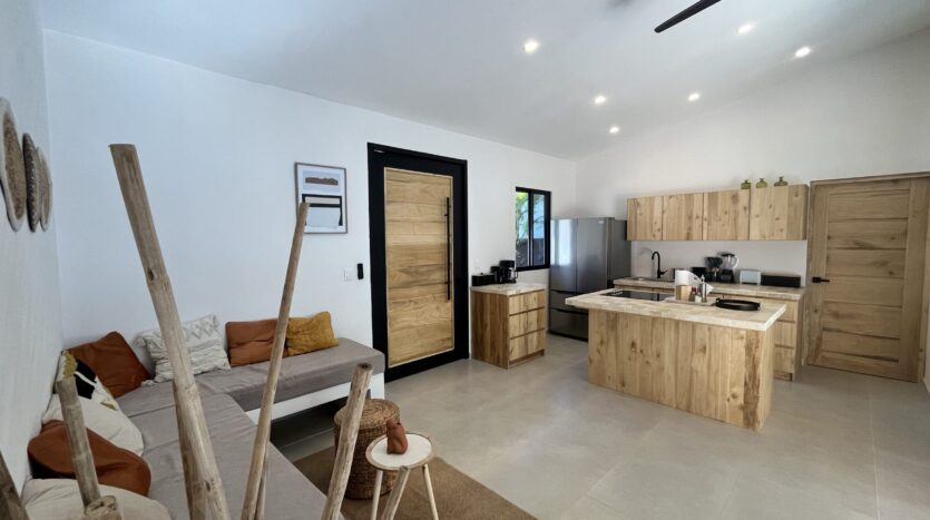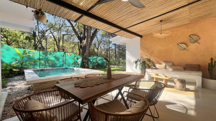 Set in the quiet residential area of Buena Vista, just 10 minutes from Sámara and the coastline, the home features a private courtyard-style pool that brings a relaxed atmosphere. Natural wood accents and tropical textures soften the clean lines and enhance the connection with the surrounding environment.